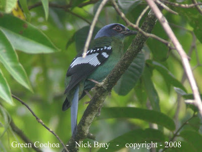 Another bird I have NEVER heard mentioned anywhere, is the Long-Tailed Broadbill. The broadbills are brilliantly coloured birds related to the parrots and parakeets, with, as their name suggests, broad gapes in their bills. Of course the more brilliant Silver-Breasted Broadbill is seen in the Himalayan foothills, but its cousin the Long-Tailed Broadbill is a soothing, absolutely breathtaking splash of grass-green and yellow, very soothing to the eye, and a bluish-green long tail (which is unusual among the broadbills). I saw a video of this absolutely soothing bird in the Internet Bird Collection. It made me wonder why I have NEVER heard any Indian birder mention this wonderfully-coloured bird - I've seen the parakeets and the barbets, but the Long-Tailed Broadbill beats them all.